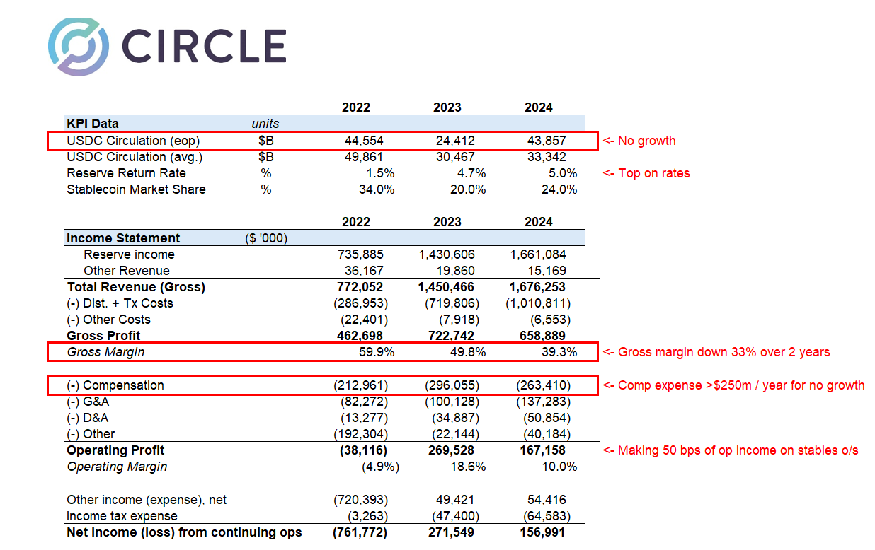 「2024年には、同社は「流通および取引コスト」に10億ドル以上を費やしており、収益の割合としてはテザーよりもはるかに高い可能性がある」と投稿に記されている。