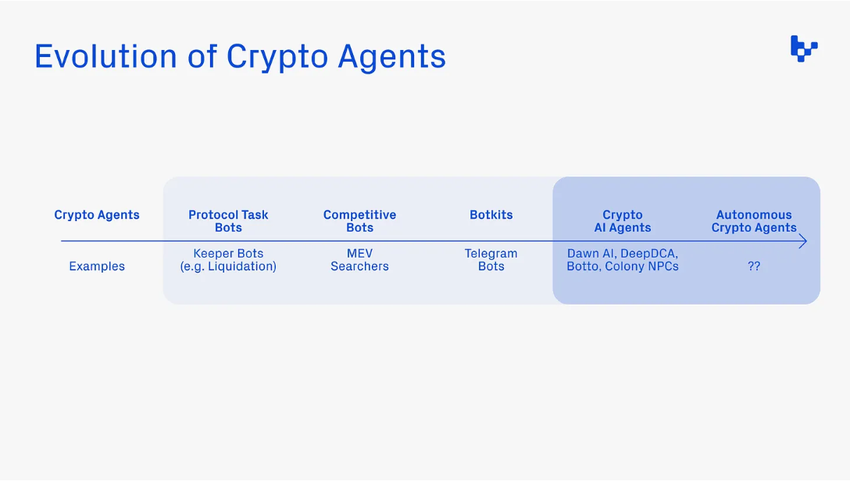 2023年12月のレポートで、Pantera CapitalのジュニアパートナーであるMason Nystrom氏は、ボットが 複雑なタスクを自律的に処理し、十分な情報に基づいた意思決定を行うことができる「堅牢なAIエージェント」にどのように進化したかを指摘しています。Nystrom氏はまた、クリプトネイティブレール上にAIエージェントを構築することには、いくつかの重要な利点があることを強調しました。主な利点の1つは、AIエージェントが暗号通貨などのネイティブ決済レールを通じて資本にアクセスできることです。