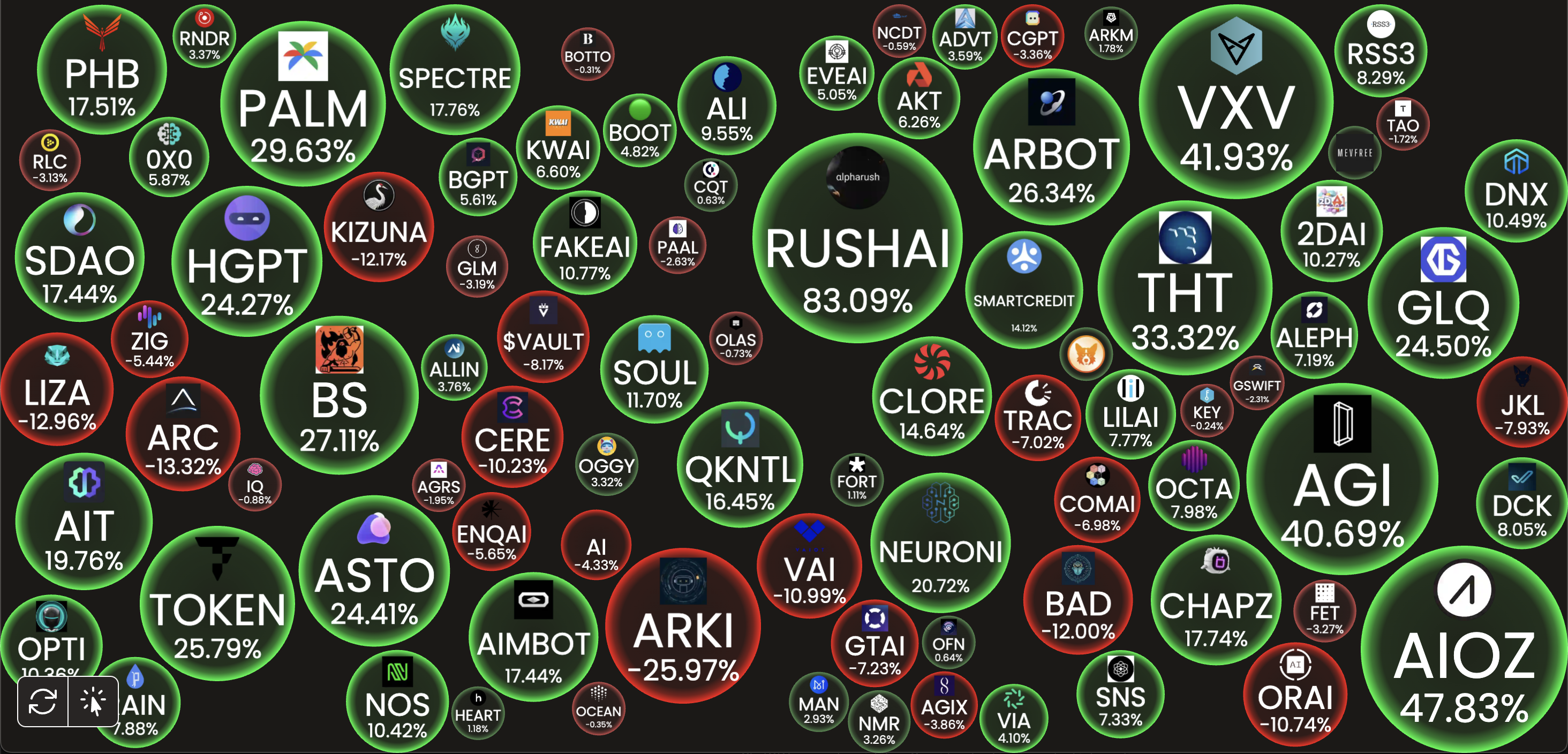 AIセクターのポジティブな発展は、AI関連トークンへの暗号資産の関心を高めている。一部のAIトークンは、ビットコインが下落した場合でも急騰している。この傾向は、AIの技術進歩に関連する資産に対する投資家の意欲の高まりを反映している。