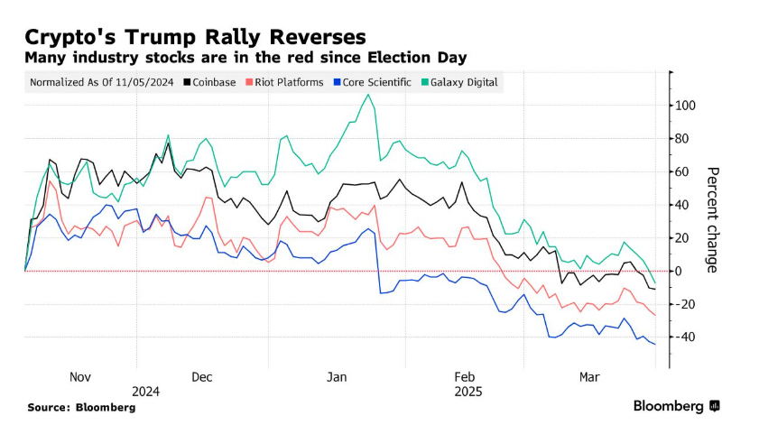 ブルームバーグによれば、この急激な下落は他の主要な暗号資産関連株にも影響を与えている。これには、ギャラクシーデジタル、ライオットブロックチェーン、コアサイエンティフィックが含まれ、いずれも大幅な下落を経験している。