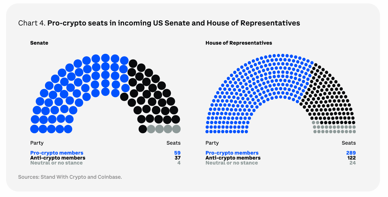 最初の主要な予測は、規制の変化が全体の暗号資産市場に利益をもたらすことを強調している。Coinbaseは、次期米国議会を「これまでで最も暗号資産に好意的な米国議会」と呼んでいる。潜在的な進展の中には、戦略的ビットコイン準備金の設立が現実になる可能性がある。