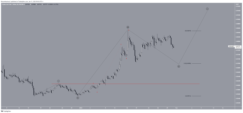 この2月の強気なCRO価格予測は、価格が波動1の高値(赤線)である0.060ドルを下回った場合は無効となる。その場合、Crypto.comの価格は$0.055を下回る可能性がある。