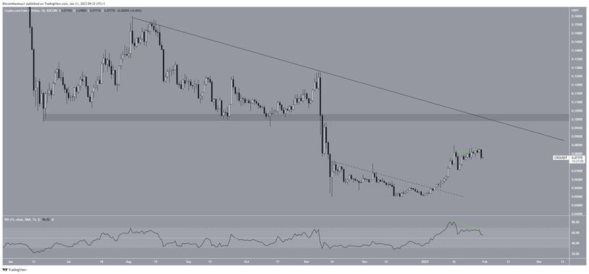 CRO価格は1月6日、短期下降抵抗線を突破した。その後上昇に転じ、1月16日に$0.085となる高値を付けた。また、一時的に下落した後、CRO価格は1月29日に同レベルまで戻した。