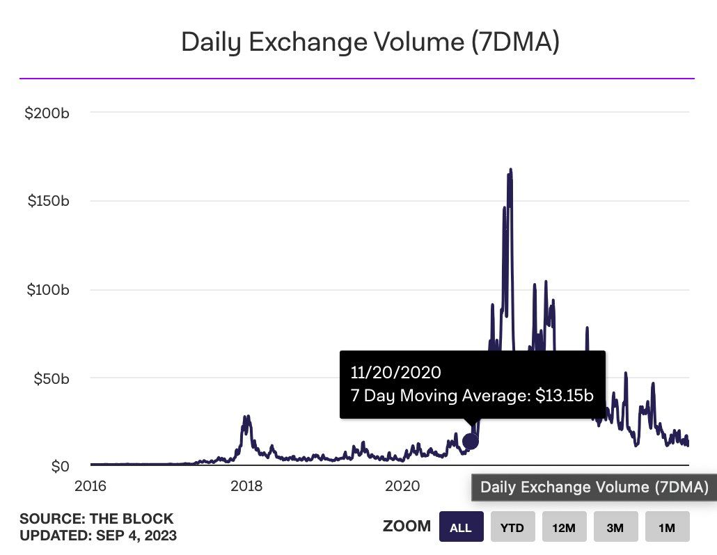 中央集権型取引所(CEX)の日次取引高は4日、2020年11月以来の低水準に落ち込んでいることが観測された。暗号資産(仮想通貨)アナリストのなかには、現在の市況は割安感が高まっており、暗号通貨を買い増しする絶好の機会と見る専門家もいる。