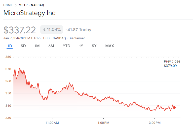 同社は2024年を通じて積極的にビットコインを購入しており、昨日2025年の最初のBTC購入を行いました。最大のビットコインマイナーであるマラソン・デジタル・ホールディングス(MARA)も株価が5%下落しました。