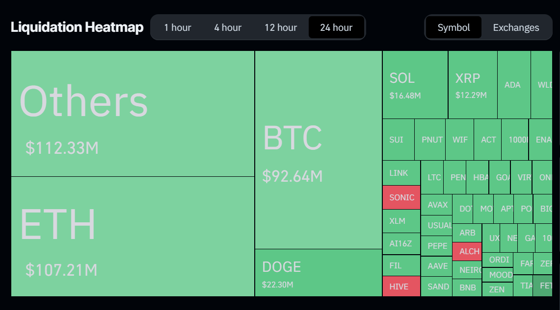 暗号資産市場全体の時価総額は7%減少し、イーサリアムは約8%下落しました。最大の清算はバイナンスで発生しました。