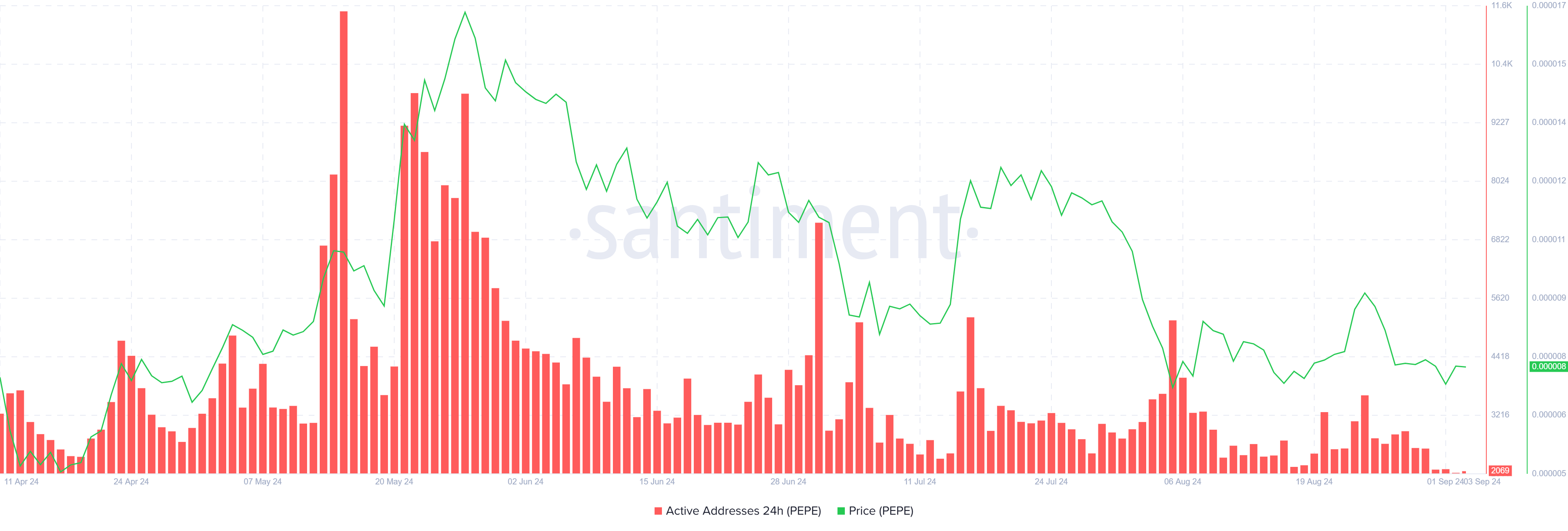 オンチェーンの指標によると、このミームコインは第2四半期を通じて参加者の少なさに悩まされていました。この傾向は、第3四半期が終了する間も続く可能性がありますが、より広範な市場の手がかりが回復を支えない限りです。