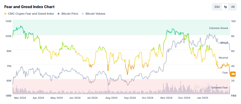 一方、市場アナリストのマイルズ・ドイツァー氏は、広くフォローされているセンチメント指標であるCrypto Fear and Greed Indexが2024年10月以来の最低値に落ち込んだことを強調した。しかし、同氏の意見では、市場の極度の恐怖は価格反転の前兆となり得る。ビットコインが重要な転換点に近づいていることを示している。
