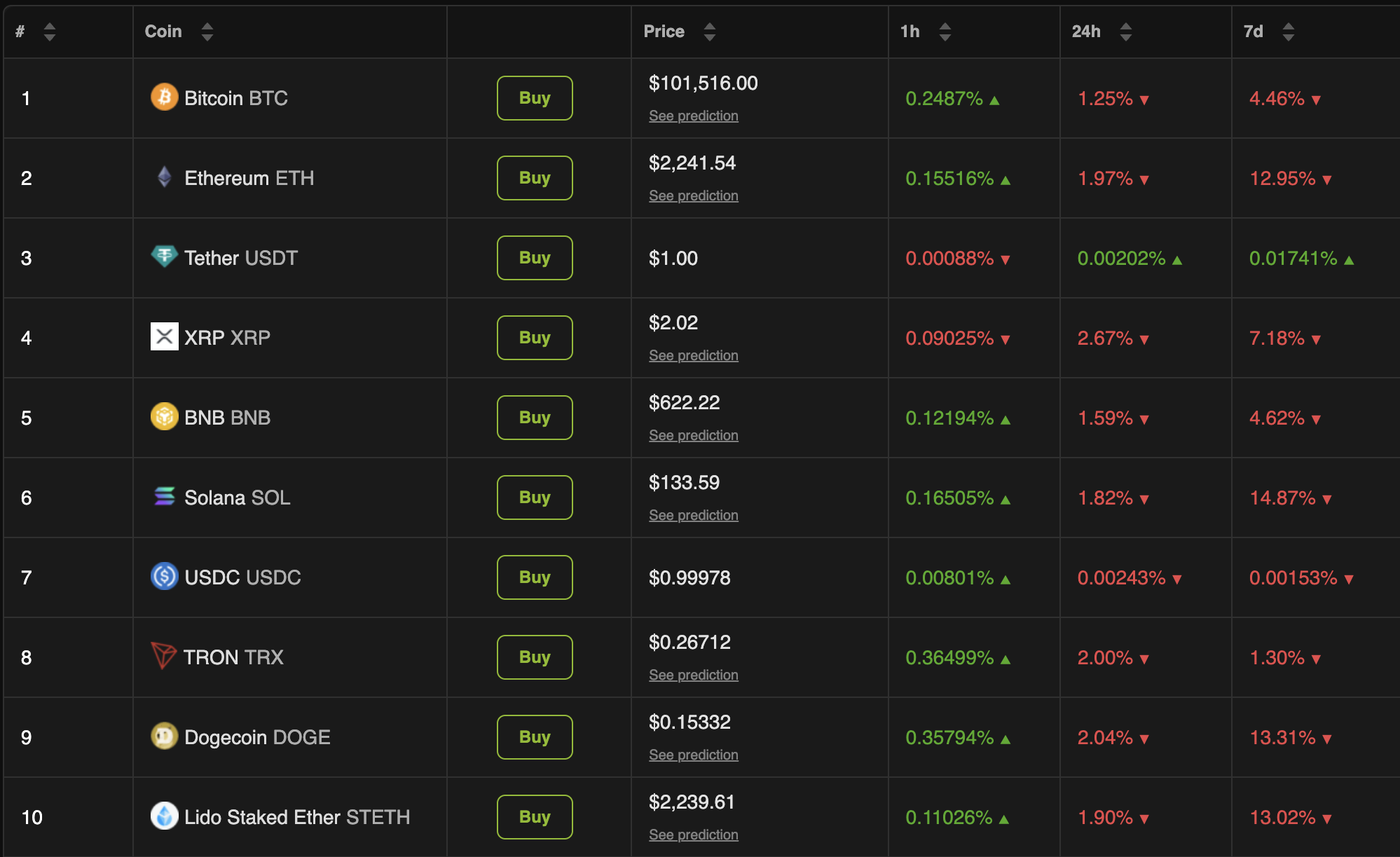 ビットコインは10万ドルを回復し、本稿執筆時点で10万1516ドルで取引されているが、過去24時間で1.2%下落した。また、BTCは過去1週間で4.4%の価値を失い、他のアルトコインの下落はさらに顕著である。