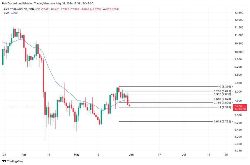 AXSの売り圧力が急上昇を続ければ、価格は7.3ドルまで下落し、利益確定売りが止まらなければ長期的なサポートレベルである6.76ドルまで下落する可能性がある。
