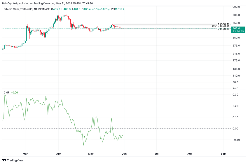 ビットコインキャッシュ(BCH)あたりの価格は、過去10日間で10%以上暴落した。これは、コイン市場からの資本逃避の急増に起因しており、チャイキンマネーフロー(CMF)の測定値によって確認された。