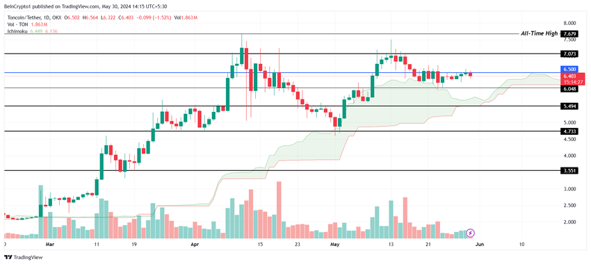 TONは4月以来3度このサポートを突破することに失敗しており、今回同じことが起こった場合、アルトコインは6.5ドルまで下落する可能性が非常に高い。このサポートを失うと、TONは6.0ドル以下に戻るだろう。