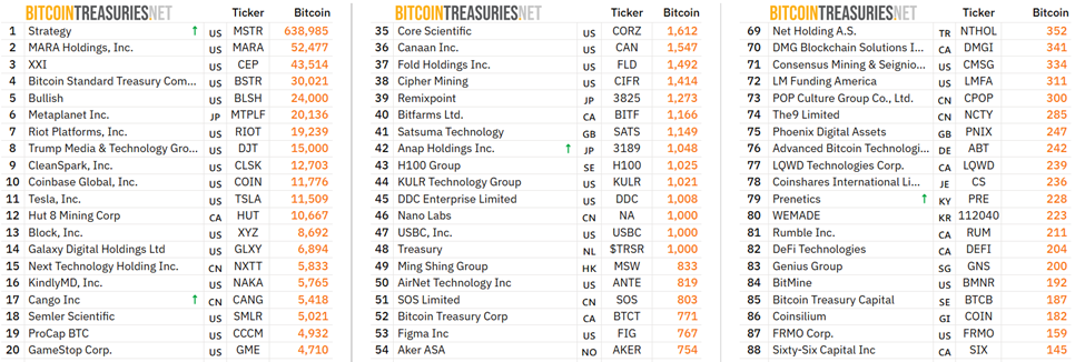 MicroStrategy社は最も注目すべき事例である。同社は9か月足らずで19万BTCを追加購入し、総保有量を63万8000超に増やした。これは2024年の記録的購入にほぼ匹敵する規模となっている。