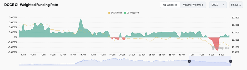 このDOGEの下落はとどまるところを知らず、7月6日には先物トレーダーの多くがショートポジションを要求したほどだ。 これは同コインのファンディングレートがマイナス(-0.026%)であったことに基づく。