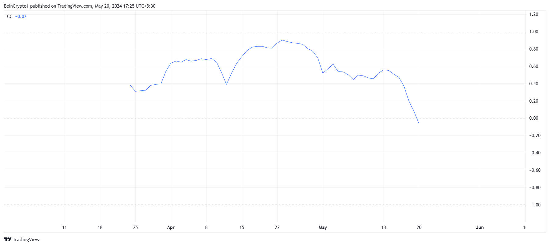 このように、週末、ビットコインの価格と他の市場は上昇し、WIFの価格は下落した。これは負の相関関係を強固にし、これが変わるまで、ソラナベースのミームコインはビットコインと正反対の結果を目撃し続ける可能性がある。