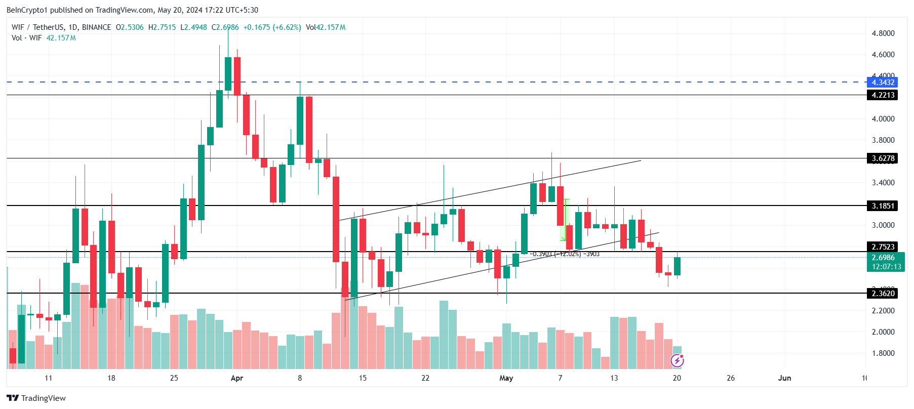 Dogwifhat(WIF)の価格は過去1ヶ月間3.5ドル以上の終値で苦戦しており、投資家の意欲を削いでいる。