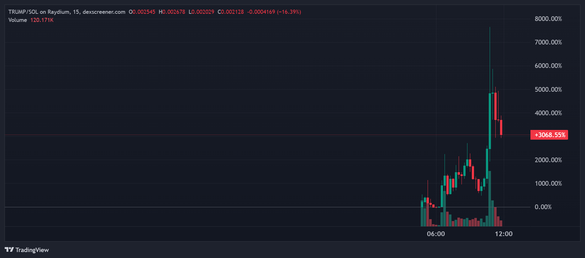 この事件はまた、Free Trump (FREE)やNEVER SURRENDER (TRUMP)のような新しいトランプ・ミーム・コインの出現を促した。DEX Screenerのデータによると、FREEとNEVER SURRENDERの価格は過去24時間でそれぞれ4,087%と3,068%上昇した。この急騰は、政治的混乱の中、新しいミームコインへの投機的関心を示している。