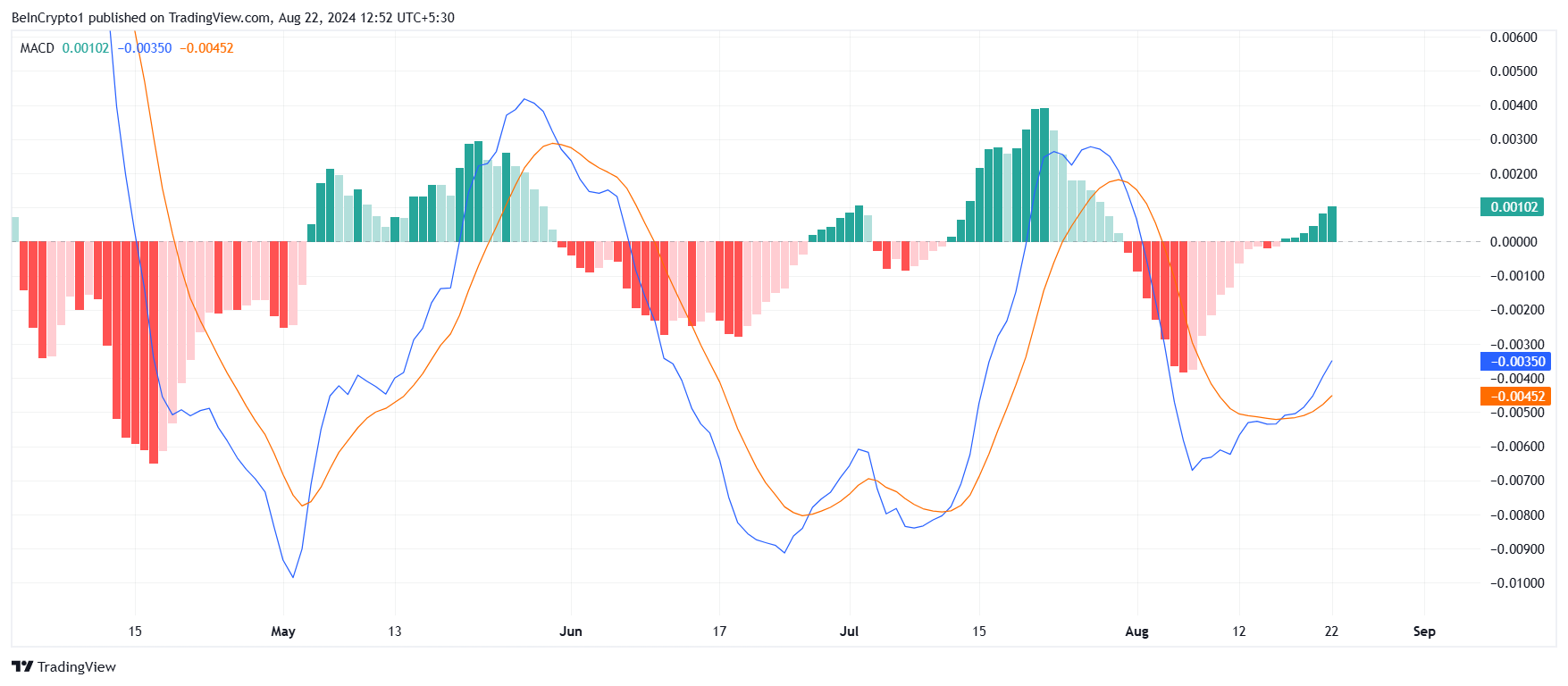 クジラがポジションの増加に消極的であることは、結果的に回復プロセスを遅らせる可能性がある。これらの大口投資家からの強力な参加がなければ、MACDが示す強気のモメンタムはドージコイン価格の持続的な上昇に完全にはつながらないかもしれない。