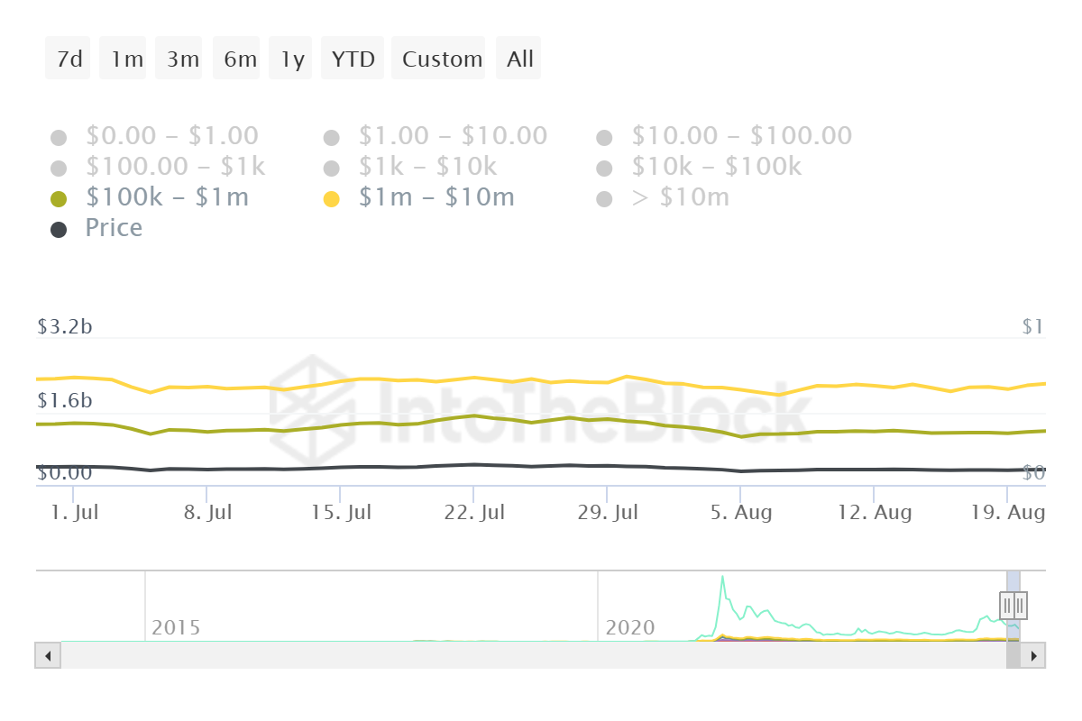 Sponsored現在のところ、クジラの保有株数は微増にとどまっている。過去2週間で、10万ドルから1000万ドルのDOGEを保有するウォレットには3億ドルしか流入していない。このような主要プレーヤーからの大幅な蓄積の欠如は、市場の不確実性や躊躇を反映した慎重なアプローチを示している。