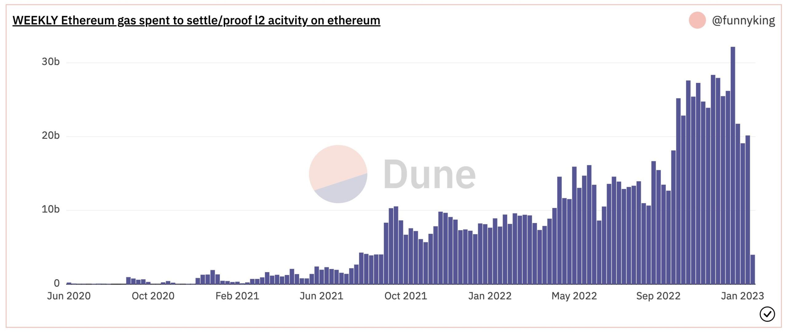 直近数週間でETHのLayer2におけるガス消費量が大幅に下落