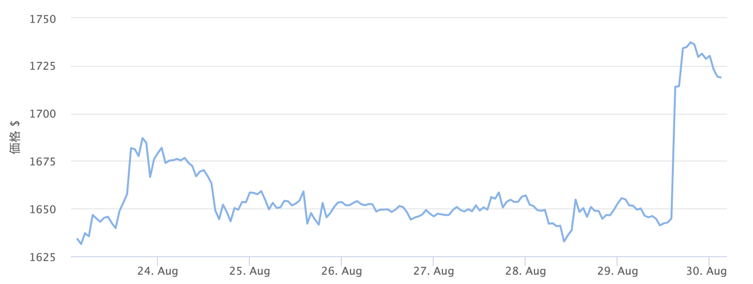 イーサリアムのステーキング量急増により、市場供給量は減少を続けていたものの、これまで価格上昇には繋がらなかった。イーサリアムは29日夜に急騰し、11日ぶりに1700ドル台に回復。現在価格は前日比4.1%増の1718ドルとなっているが、これは米証券取引委員会と争っていた暗号資産投資会社グレイスケール・インベストメンツが勝訴したことを受けたものと見られる。イーサリアム価格は2021年11月に記録した4800ドル台と比較し、依然としてピーク比64%減の水準にある。