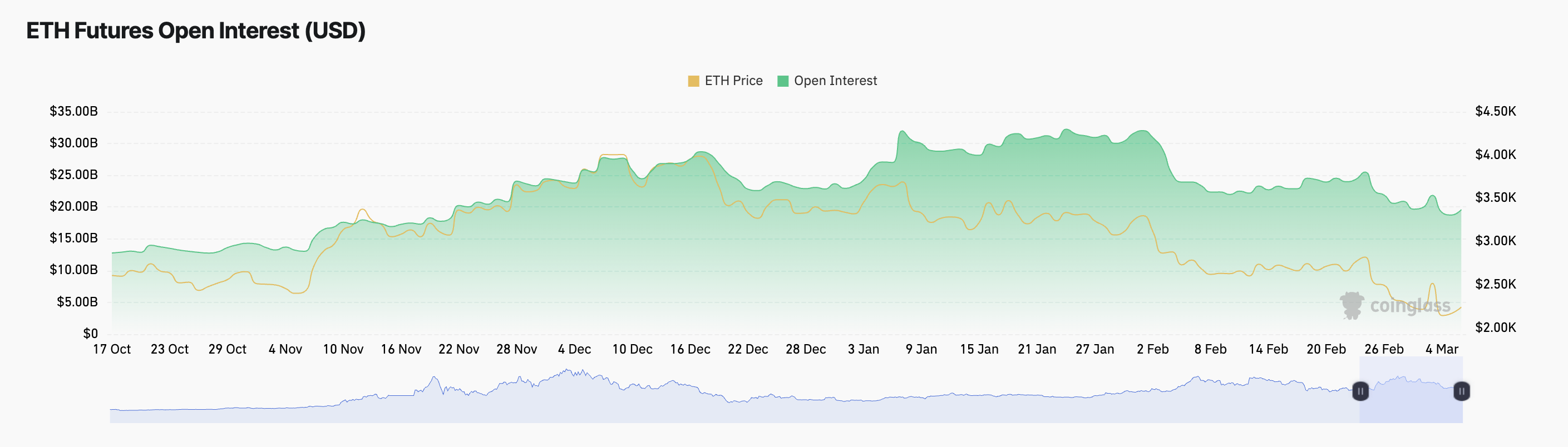 資産のオープンインタレストは、未決済のデリバティブ契約(先物やオプションなど)の総数を測定する。ETHのオープンインタレストの上昇は、市場参加者の増加と先物市場への資本流入を反映しており、現在の上昇傾向を強化している。
