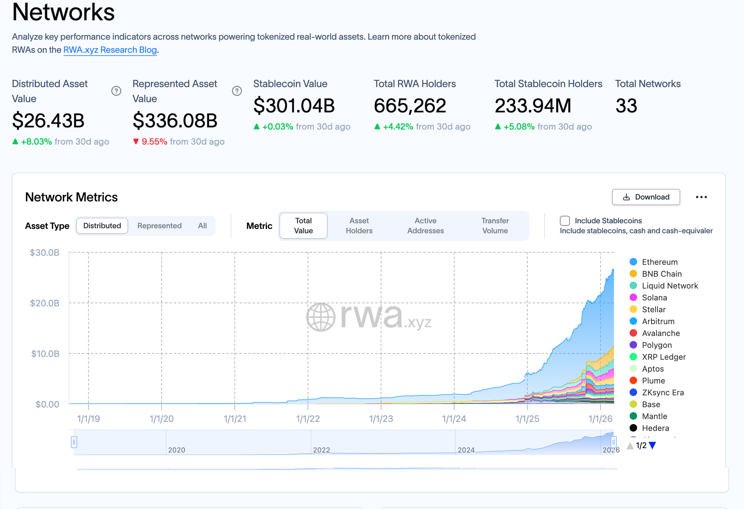 RWA市場に関する公開データによれば、2026年2月16日時点でイーサリアム上でトークン化された資産は約150億ドル規模に達し、市場全体の60%以上を占める。ブラックロックもレポートで、トークン化時代の恩恵を受ける可能性があるブロックチェーンとしてイーサリアムを挙げている。