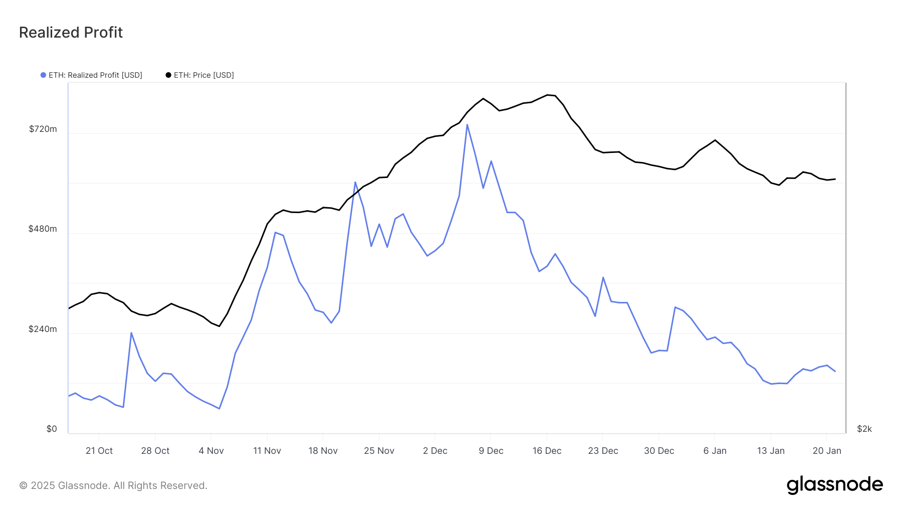 実現利益の増加が見られないことは、売りの停滞が続く可能性を示唆しており、イーサリアムが上昇の勢いを築くことに集中できるようにしています。投資家がコインを保持しているため、市場の状況は外部要因が好ましいままであれば、徐々に回復する準備が整っています。