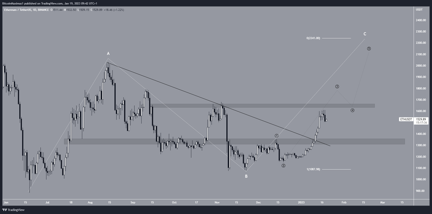イーサリアム価格は年明けから加速度的に上昇している。1月11日には、1,350ドルのレジスタンスエリアと2022年8月から続いていた下降抵抗線の両方を突破した。これまでのところ、ETH価格は1,611ドルの高値に達している。
