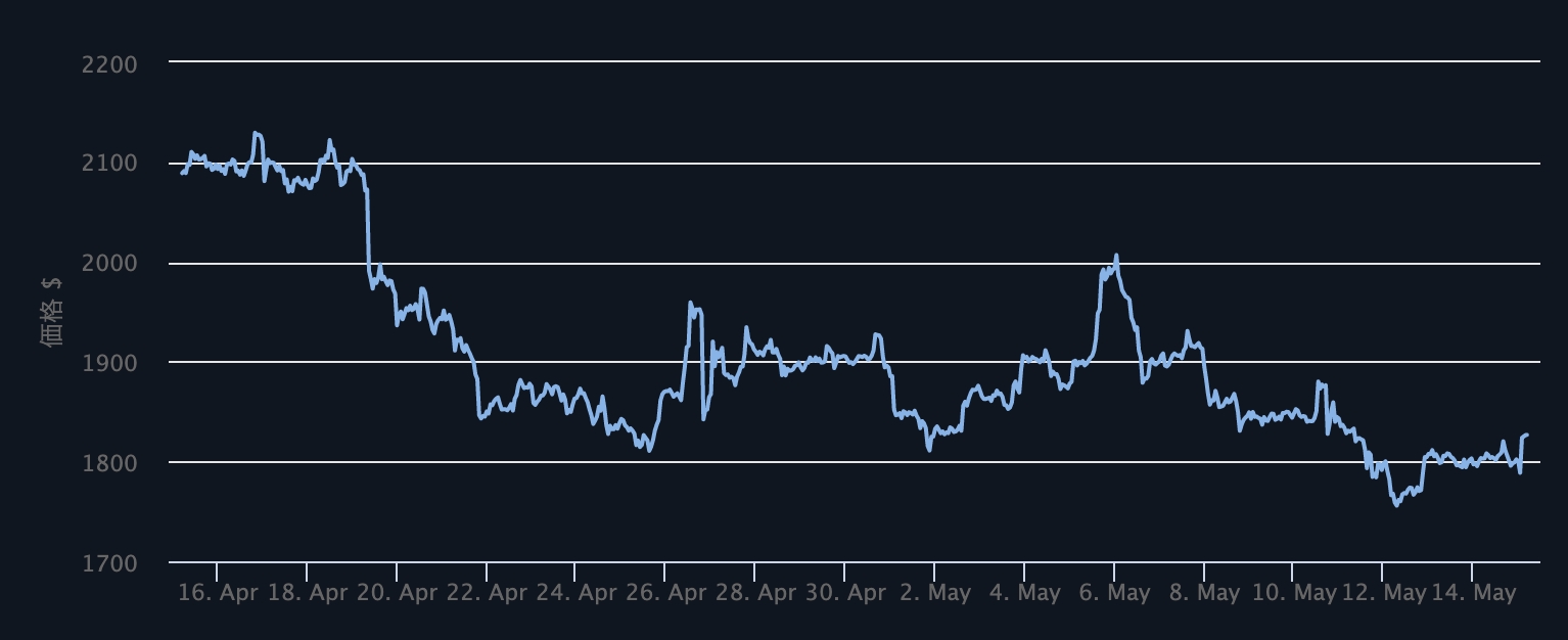 本稿執筆時点で、イーサリアム価格は1,826ドル。直近24時間は1.25%増と回復傾向にある。