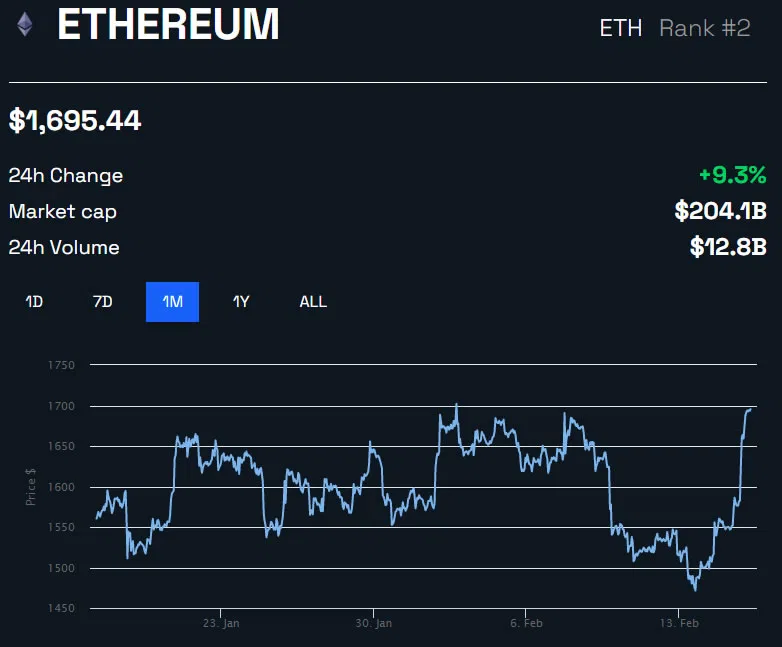 報道発表の時点では、ETHはわずかに下落し1,680ドルで取引されている。