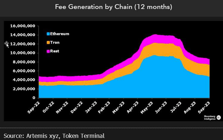 米ブルームバーグ暗号資産(仮想通貨)部門のジェイミー・カッツアナリストは7日、ブロックチェーンの取引手数料を巡る状況について、X(旧Twitter)に投稿した。