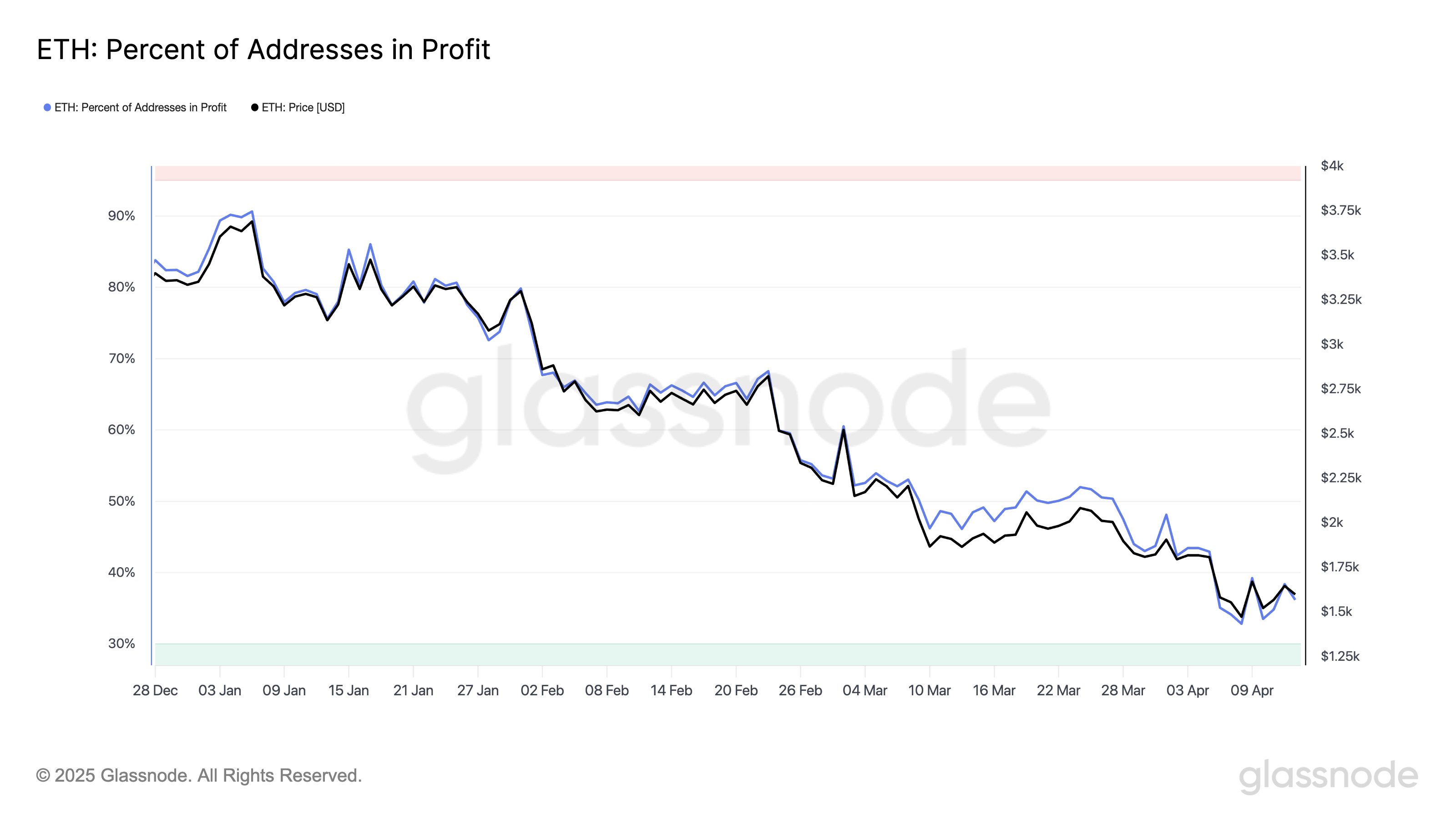 最近の休眠クジラの増加は注目に値する。彼らの売却は依然として利益を生んでいるが、彼らの活動はこの傾向を維持しようとしていることを示唆している。Glassnodeによれば、現在利益を上げているイーサリアムアドレスは36.1%に過ぎず、多くの保有者が損失を抱えていることを示している。