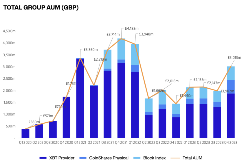 欧州最大の暗号通貨投資会社コインシェアーズは13日、2023年第4四半期に約4200万米ドルの利益を計上した。