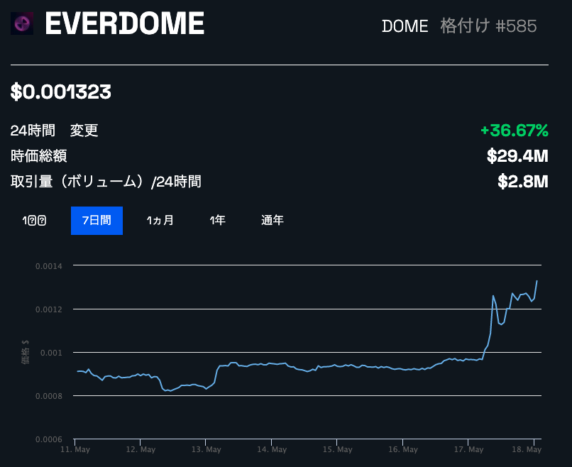 メタバース・プロジェクトのエバードーム(DOME)は17日、35%を超える急騰を見せた。このほかアクシィ・インフィニティやエンジンコインなどのメタバース銘柄も上昇を見せている。価格の上昇にはアップルのVR・ARヘッドセットの最新情報が関係していると見られる。
