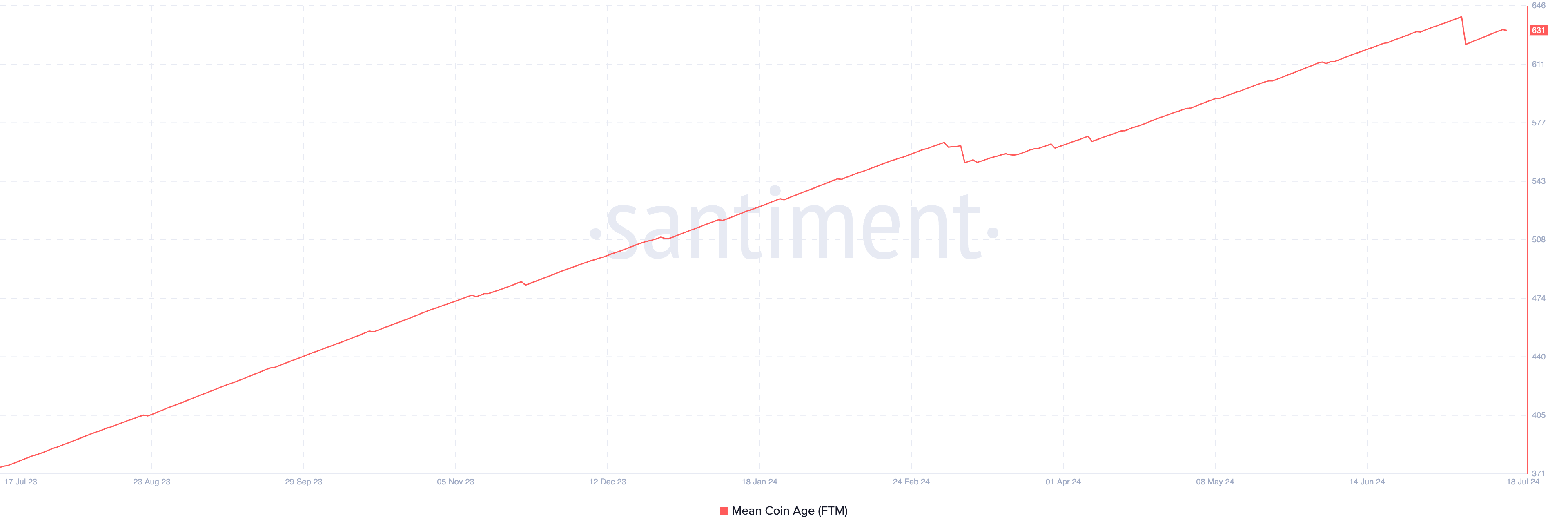 上昇トレンドを維持している場合、コインの保有期間が長くなっていることを意味する。本稿執筆時点で、FTMの平均コイン年齢は631である。