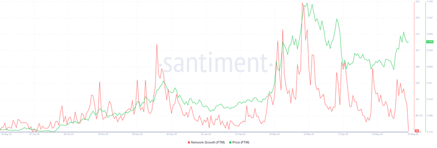 このセンチメントは、潜在的な投資家が現在注目しているインセンティブの欠如によってさらに立証される。ネットワーク成長率の下降は、Fantomが市場での牽引力を失いつつあることを示唆している。
