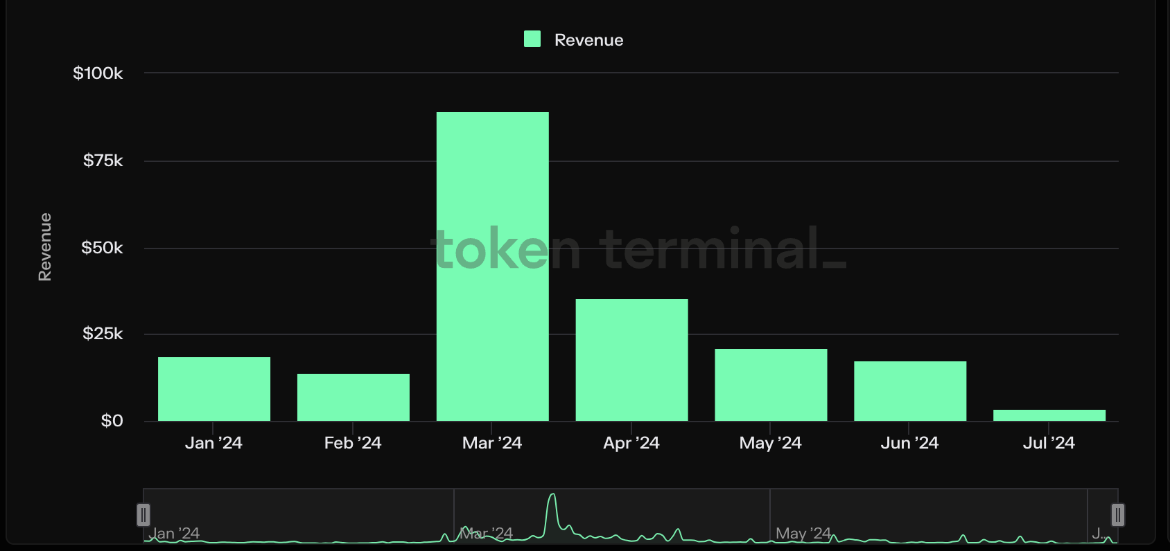 ファントムの月次収益は、3月に8万9,377ドルの年初来最高値を記録した後、減少に転じた。第2四半期末までに、これは81%減少した。