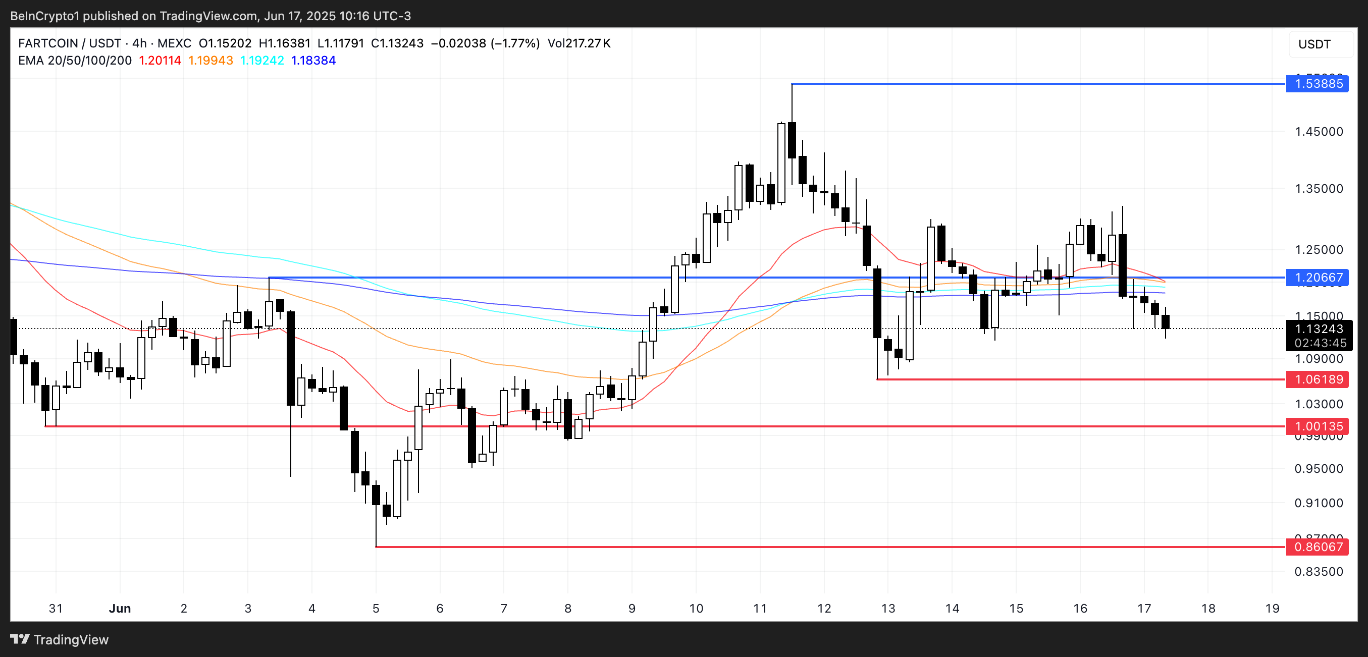 一方で、強気派が支配権を取り戻し、トレンドが上向きに転じれば、FARTCOINは1.20ドルの抵抗を再テストする可能性がある。そのレベルを明確に突破すれば、1.53ドルへの動きが期待できる。