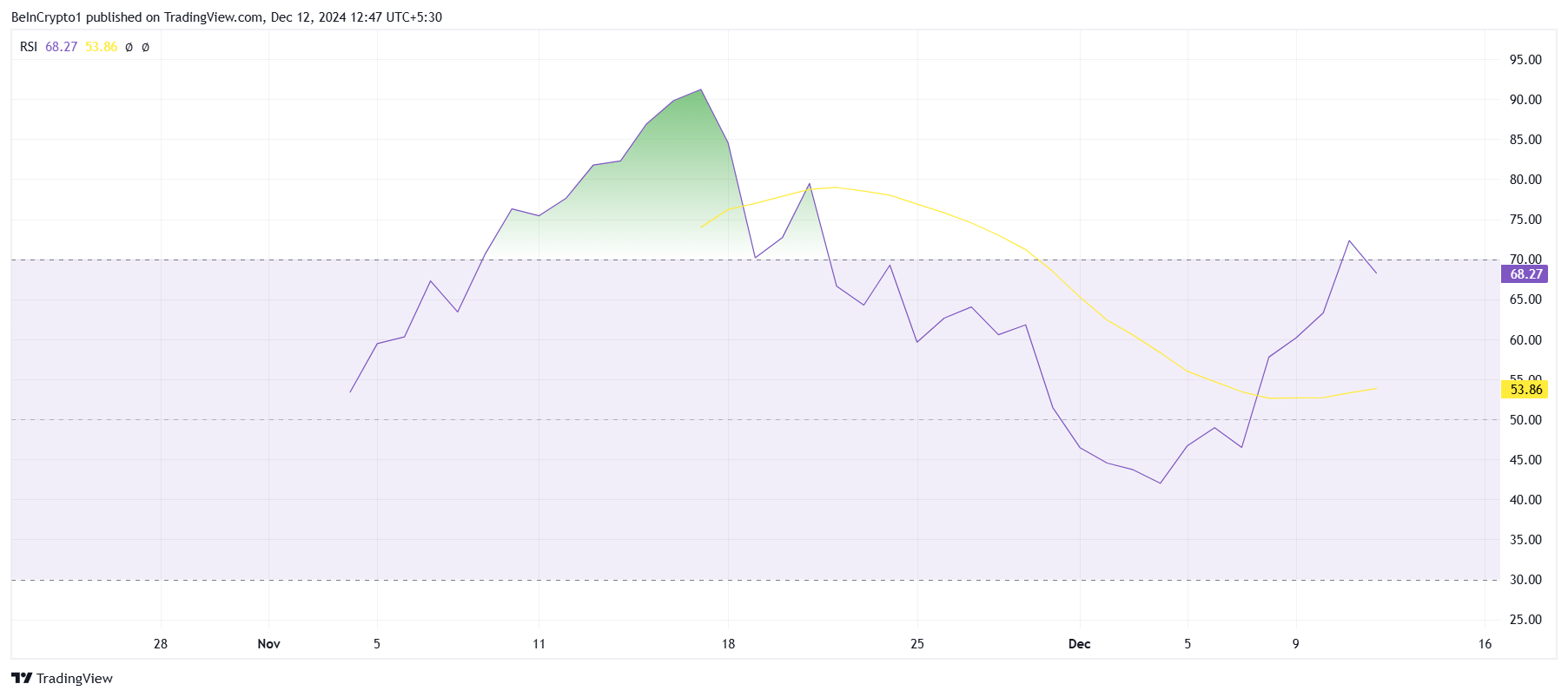 技術的な面では、FARTCOINの相対力指数(RSI)は現在上昇傾向にあり、アルトコインが上昇の勢いを経験していることを示している。しかし、RSIは最近、買われすぎのゾーンに急上昇し、市場が調整の準備が整っている可能性を示唆している。