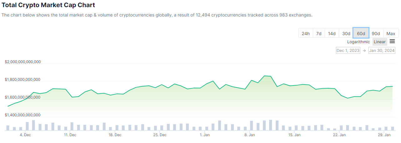 暗号資産市場はこの日2.8%反発し、本稿執筆時点で1兆7500億ドルに達した。