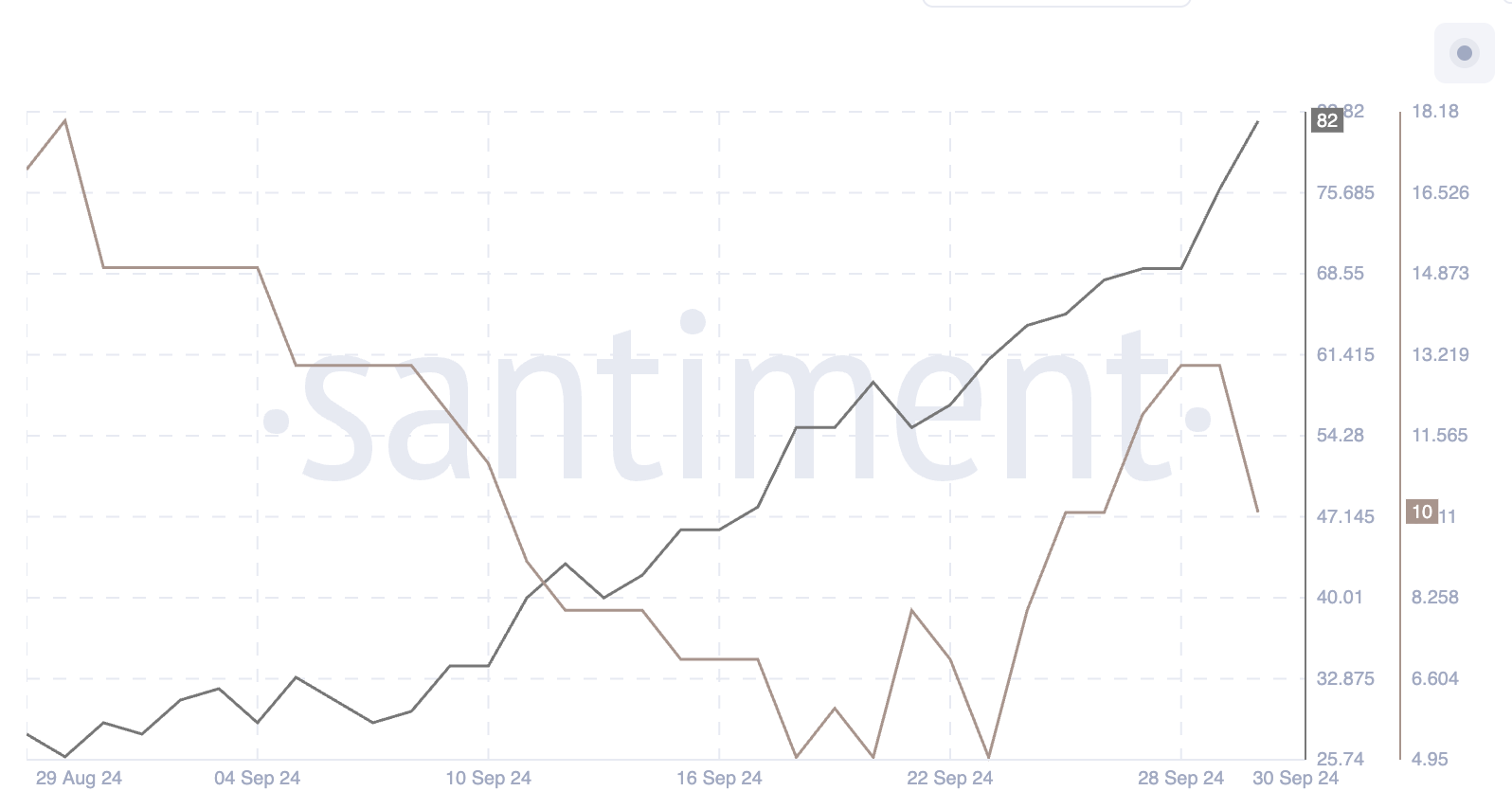 FETのソーシャルドミナンス7日移動平均は急落し、前日の0.336%、9月24日の0.668%から0.123%に低下しました。社会的優位性は、市場全体に対するコインの注目と議論のレベルを測定するため、この減少は重要です。