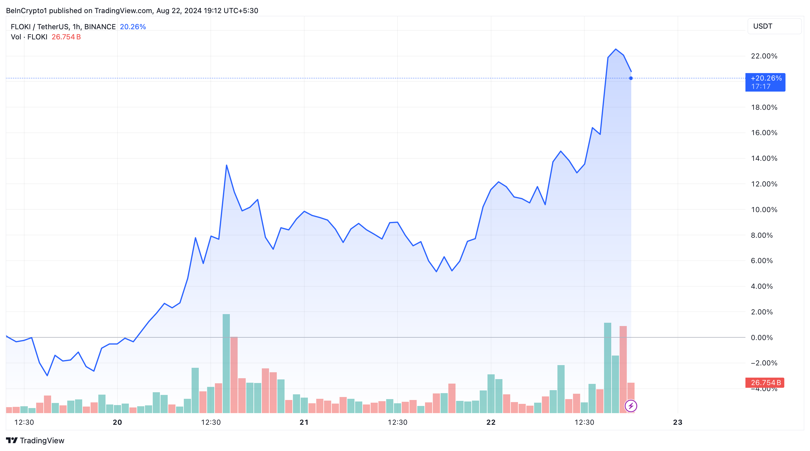 この投資と同時に、BinanceはCATトークンのエアドロップのサポートを拡大し、プラットフォーム上のFlokiホルダーをターゲットにした。このサポートはFlokiトークンの市場パフォーマンスを大幅に押し上げ、その価値は今週20%近く上昇した。