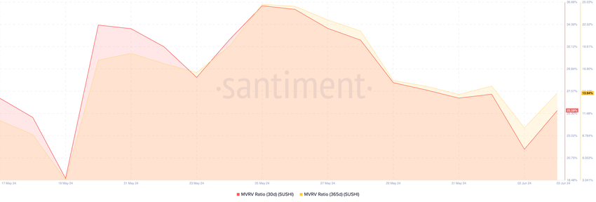 本稿執筆時点で、GALAのMVRVレシオは30日移動平均線と365日移動平均線を用いて評価され、それぞれ-21.69%と-71.57%であった。