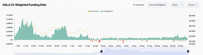 プラスの場合、それは強気のシグナルであり、ロングポジションへの強い需要を示唆している。本稿執筆時点では、GALAのファンディング・レートは0.011%だった。