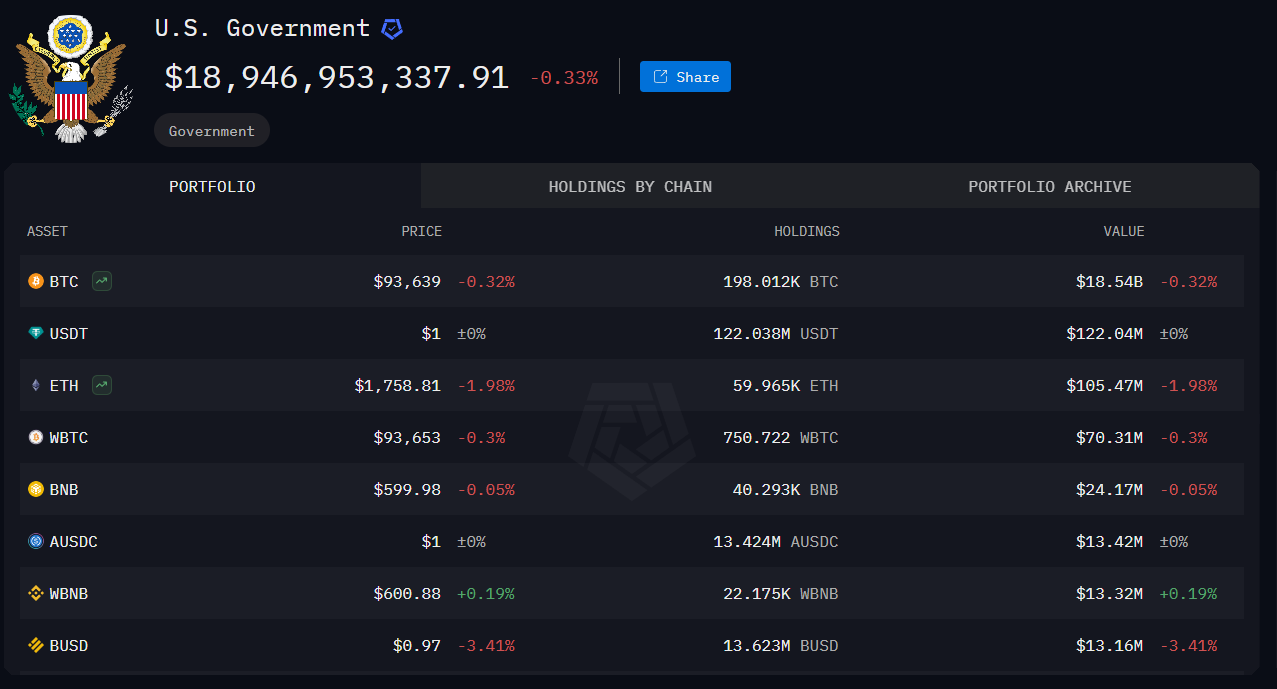 CoinGeckoの新しい報告によれば、米国政府のアカウントはビットコインの総供給量の2.3%を保有している。彼らの保有量は合計で46万3,741BTCであり、1年前の52万9,591から減少している。
