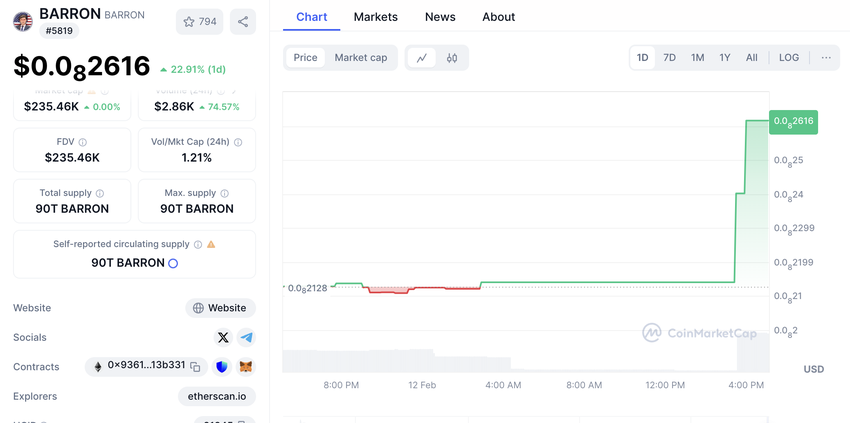 BARRONミームコイン、まだ下落せず
