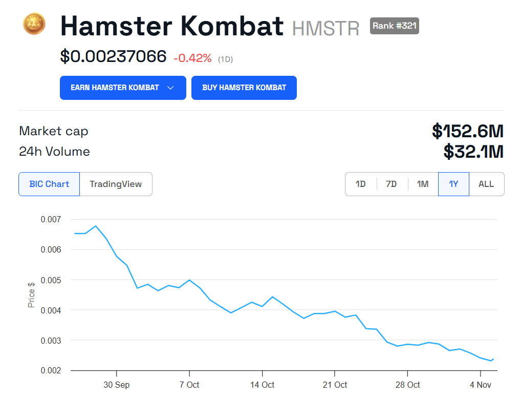 さらに、9月のエアドロップ計画により多くのユーザーが失望した。それ以来、プレイヤーは継続的にゲームを離れている。HMSTRトークンの価格も9月の$0.0084の高値から70%以上下落し、$0.0023になった。