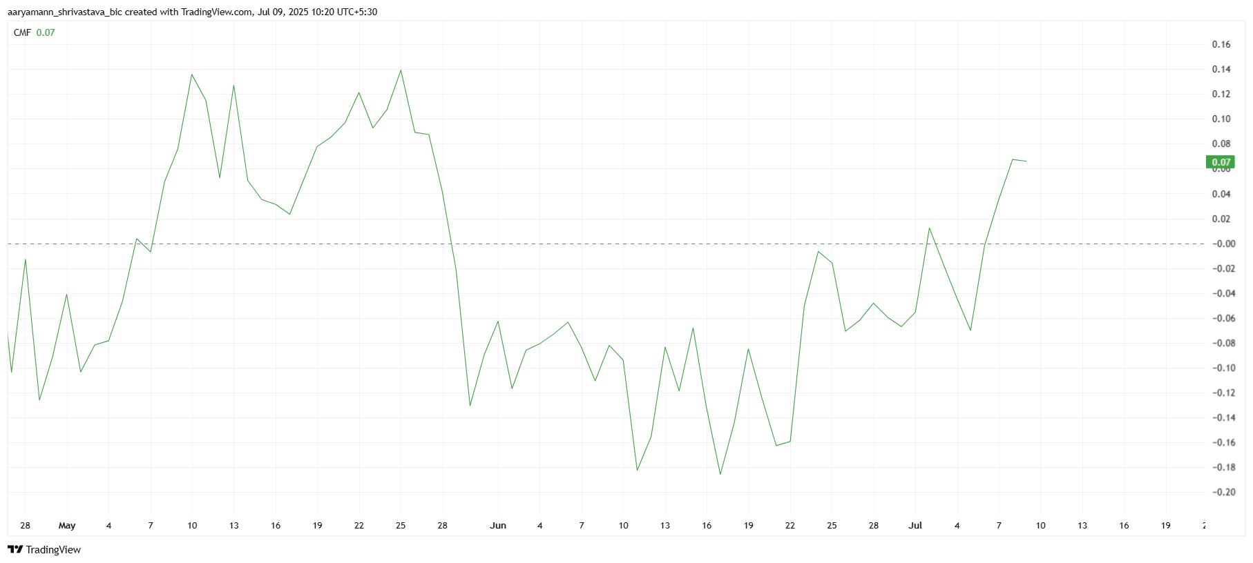 チャイキンマネーフロー(CMF)指標は最近、HBARへの流入が大幅に増加したことを示しており、市場のセンチメントの変化を指摘している。この急増は、HBARがグレースケールのスマートコントラクトファンドに追加されたという好材料に大きく起因している。