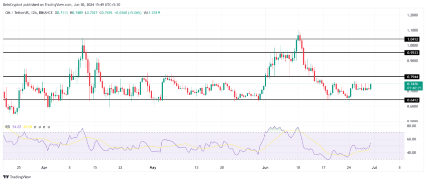 この後退にもかかわらず、OMの価格は0.64ドルの重要なサポートレベルを維持し、3ヶ月半にわたって堅持している。このサポート・レベルは、特に相対力指数(RSI)が強気領域に近づいていることから、OMの価格に反発のチャンスを提供している。